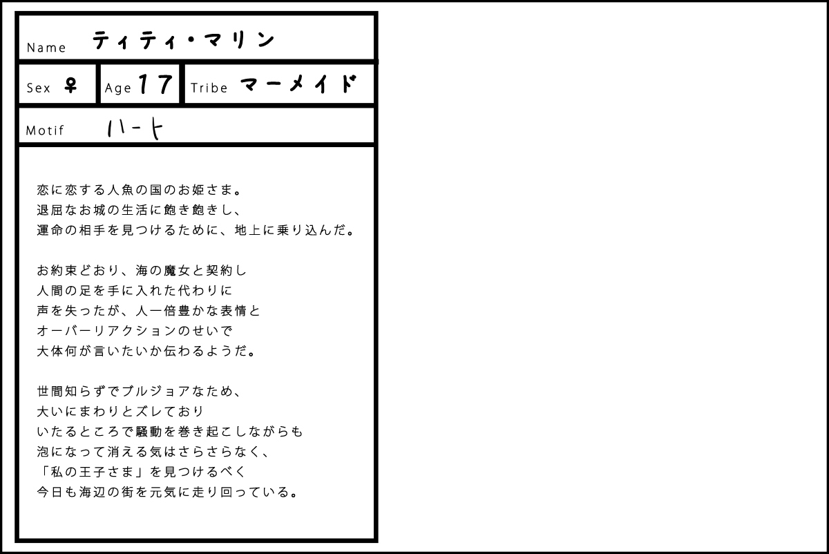 完成したキャラクターは「設定を考えた人のキャラクター」として扱ってください。